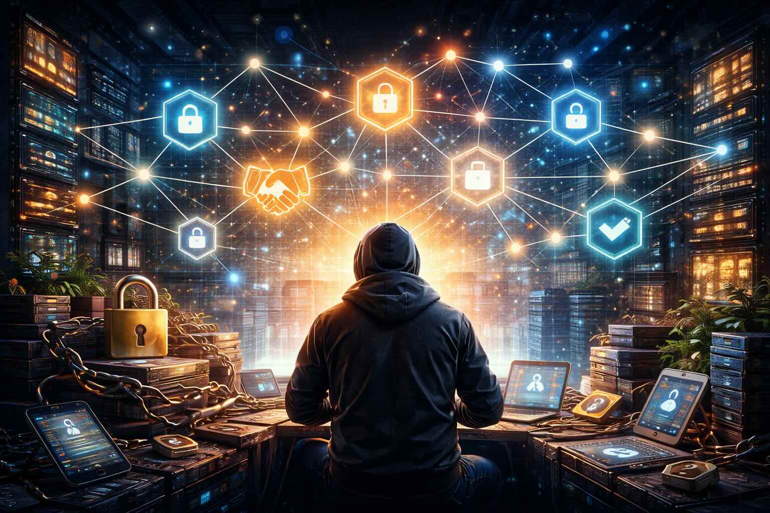 You look at your palms — empty, warm from the light — and try to imagine words heavy enough to unlock something as vast as a blockchain.